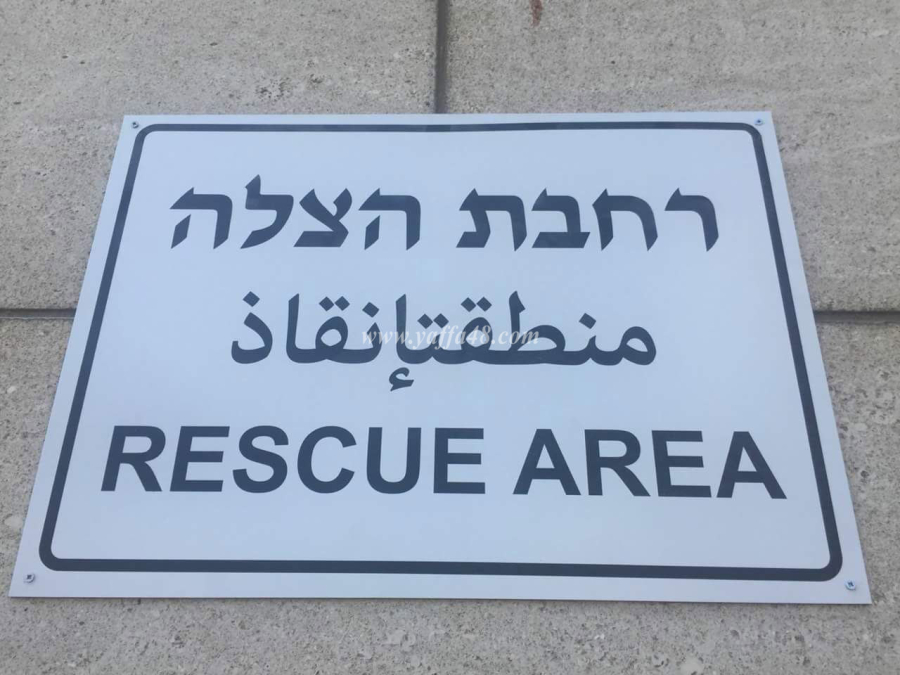 وقد كُتب على اليافطة "منطقتانقاذ"، وهي كلمة غير مفهومة وكان من المفترض أن يتم كتابة "منطقة انقاذ"، إلا أن هذه الصور المتتالية للأخطاء الكبيرة في اللغة العربية تعكس تهميش اللغة العربية، ويعتبرها البعض استخفاف باللغة والجماهير العربية في المدينة.