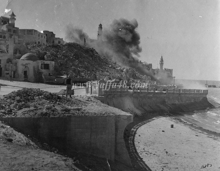 كما ويظهر في احدى الصور مجموعة من الجنود البريطانيين أمام مسجد يافا الكبير، وأخرى لشاطئ المنشية والبلدة القديمة ويظهر فيها عدد من البيوت والمباني التي تم هدمها عام النكبة.