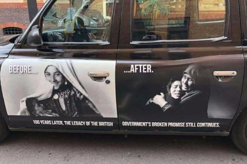 ملصقات منددة بوعد بلفور على سيارات الأجرة في لندن