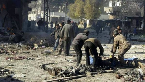وقال عمال الدفاع المدني إن ما لا يقل عن 17 شخصا لاقوا حتفهم في بلدة حمورية في ضربة جوية على سوق ومنطقة سكنية قريبة، بعد أن استهدفت نحو 30 ضربة في الأربع والعشرين ساعة الماضية بلدات في منطقة الغوطة الشرقية السكنية الريفية كثيفة السكان إلى الشرق من دمشق.
