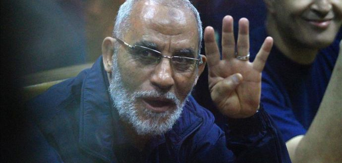 وفيما يخص القضية التي يحاكم فيها مع أكثر من سبعمئة آخرين، قال بديع إن المحكمة لا تسمح له بمناقشة الشهود، وأكد أن الجماعة كانت حريصة على أن يكون اعتصام ميدان رابعة في كنف السلمية، مستدلا بتفتيش حقائب الوافدين إلى الميدان، ودعوته هو من على المنصة إلى الالتزام بالسلمية.
