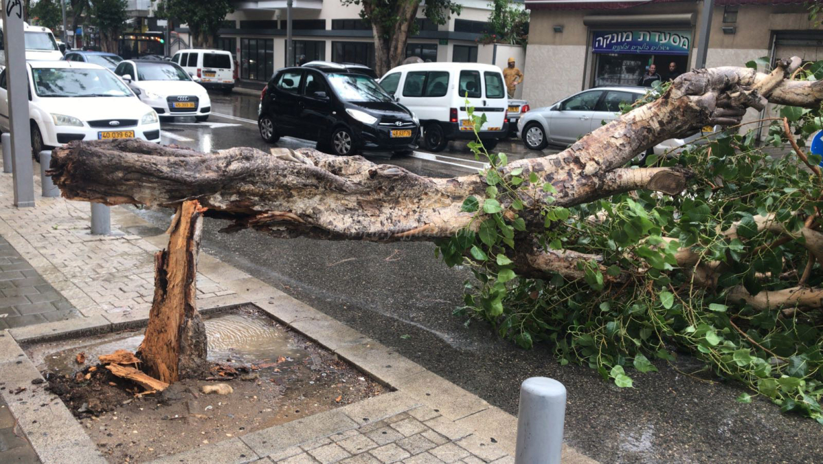 بالصور: سقوط أشجار في مدينة يافا بسبب الرياح العاصفة