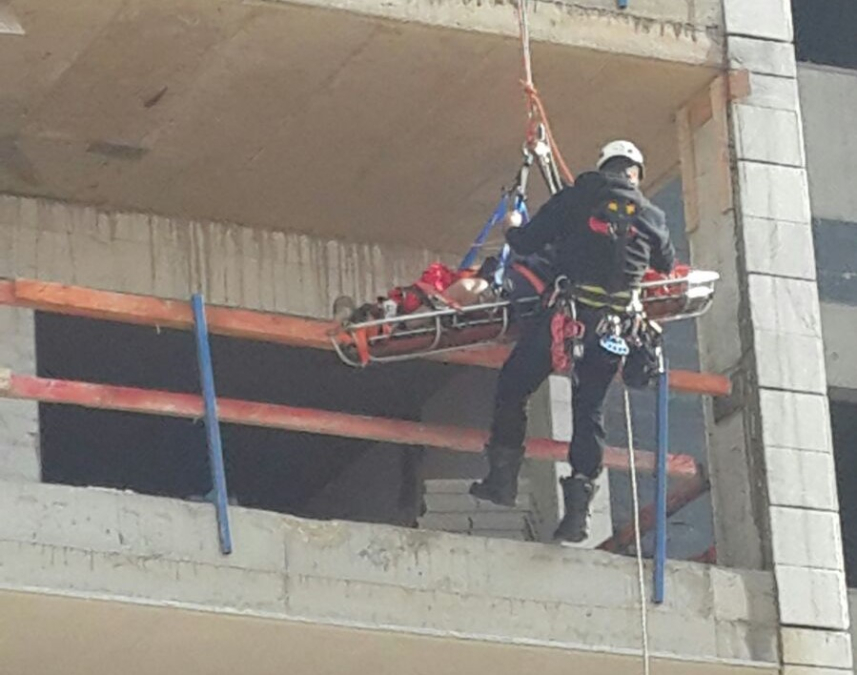صور: تخليص عامل اصيب في ورشة عمل على الطابق الخامس في رأس العين