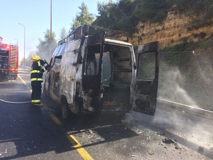صور: احتراق مركبة بسيارة في شارع 1 باتجاه القدس