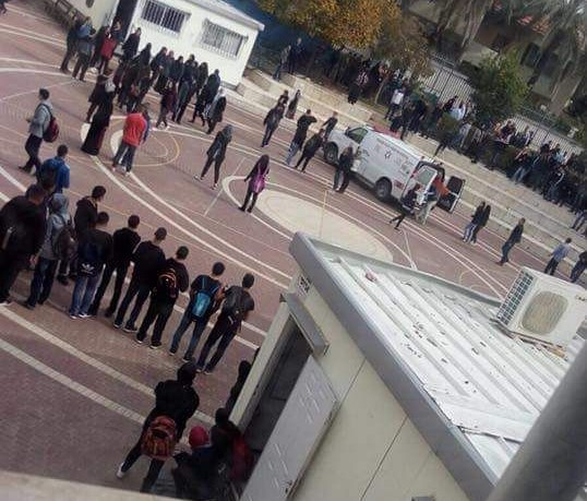 وقد تم استدعاء الطواقم الطبية الى المكان والتي باشرت بتقديم الاسعافات الأولية للطالب المصاب، ونقلته بسيارة الاسعاف الى المستشفى، فيما تم تقديم الاسعافات الاولية لعدد من الطلاب الذين اصيبوا بالهلع.