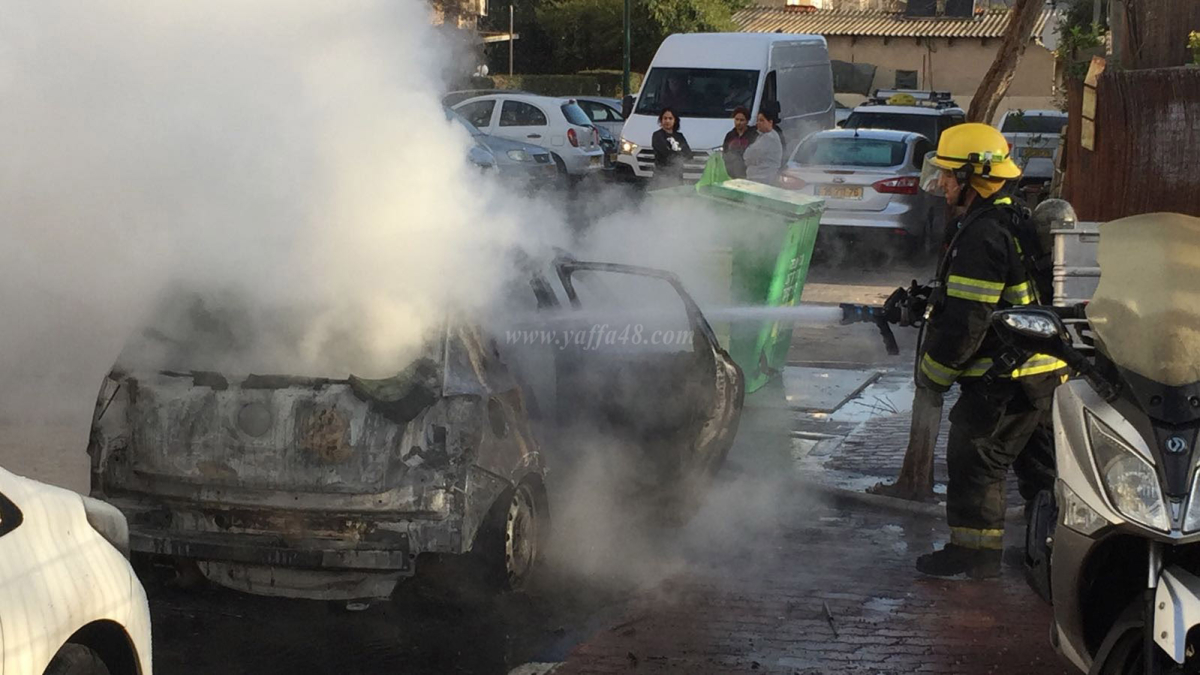 فيديو: احتراق مركبة في مدينة يافا وطواقم الاطفائية تهرع إلى المكان