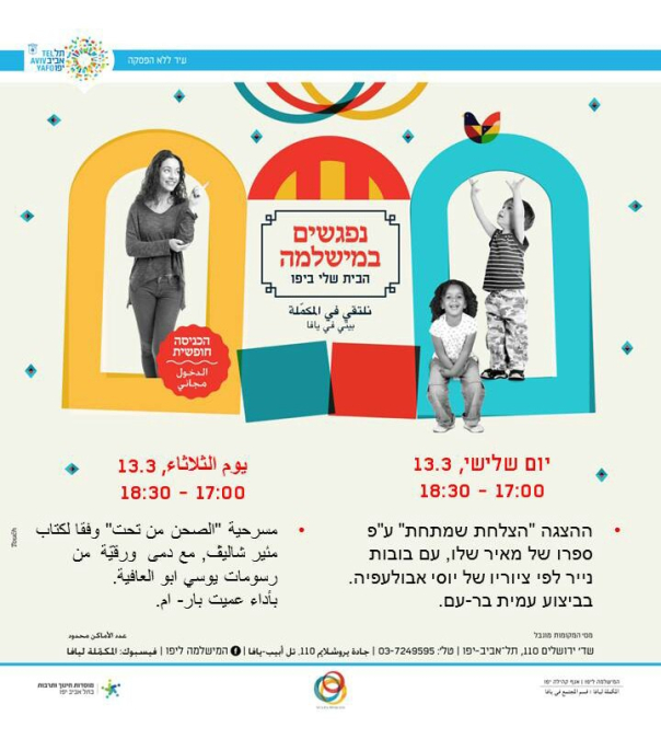 وسيتخلل الفعاليات: مسرحية "الصحن من تحت" وفقاً لكتاب مئير شاليف، مع دمى ورقية من رسومات يوسي ابو العافية بأداء عميت بار - ام.