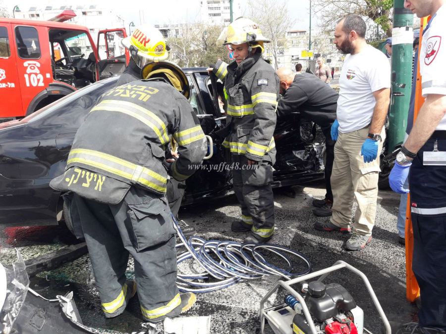بالصور: اصابة شخصين بحادث طرق مروّع بين مركبتين في مدينة يافا