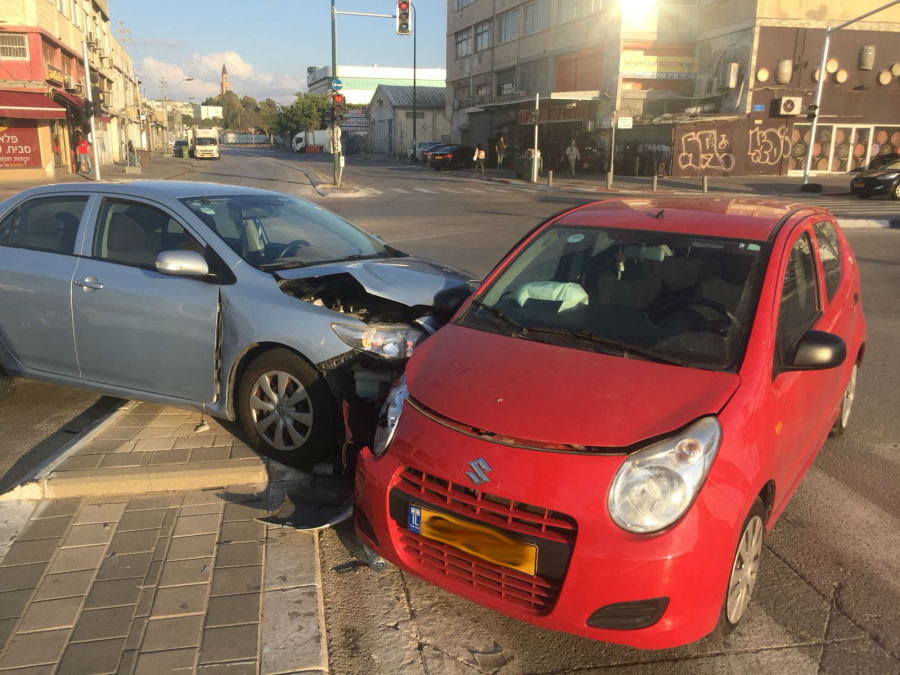 بالصور: اصابة طفيفة لشخصين بحادث بين مركبتين في يافا