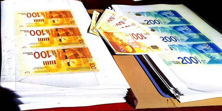 وحسب الشبهات فإن المشتبهين قاموا بتزوير أوراق نقدية من فئة 100 شيكل و200 شيكل بقيمة ملايين الشواقل وادخالها للسوق الإسرائيلي .