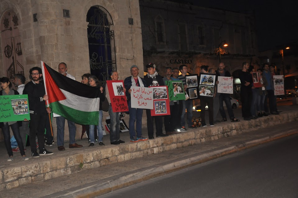 نظمت مساء أمس الجمعة ناشطات من مدينة يافا وقفة احتجاجية تضامناً مع غزة في دوار الساعة، وذلك تحت عنوان "من يافا لغزة وقفة كرامة وعزة"، وسط مشاركة جمع من الاهالي والنشطاء.