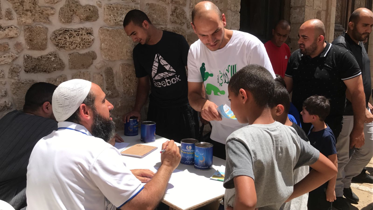 بالصور: جمعية يافا للاغاثة الانسانية توزّع الحصالات الرمضانية في مساجد المدينة