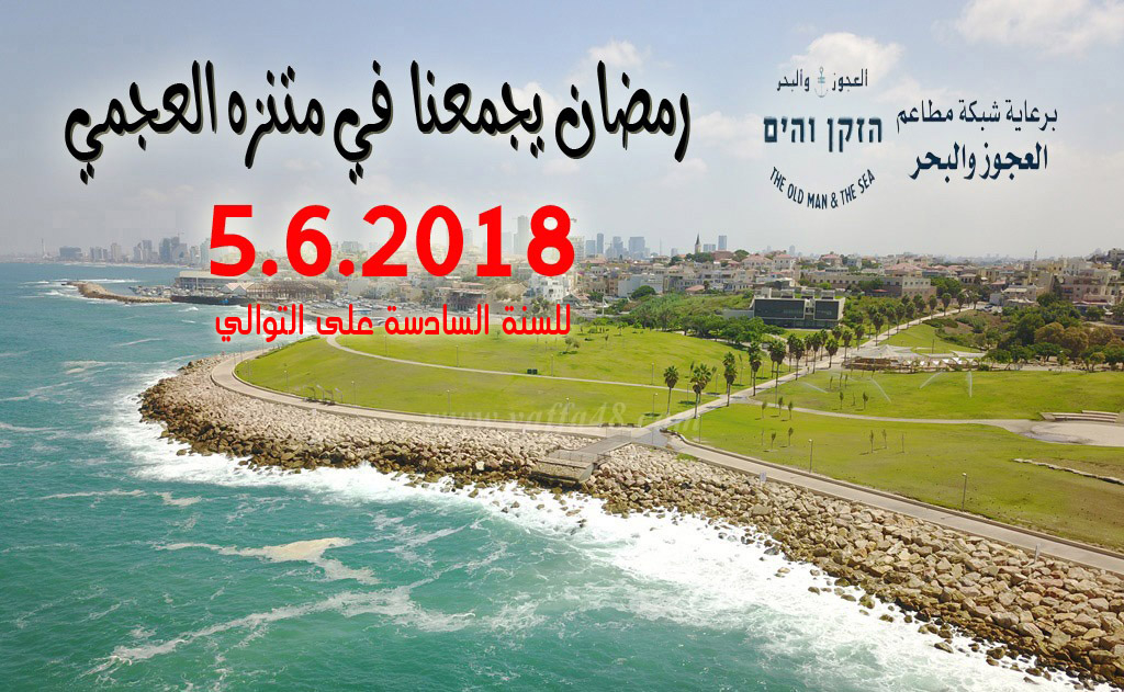 يُنظم مطعم العجوز والبحر فرع ميناء يافا افطاراً جماعياً للأطفال وذويهم وذلك يوم الثلاثاء الموافق 5-6-2018، حيث يعتبر الافطار الاضخم على مستوى مدينة يافا ويُقام للعام السادس على التوالي، تحت عنوان "رمضان يجمعنا في متنزه العجمي".