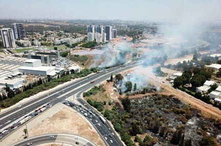 قال كايد ظاهر المتحدث بلسان نجمة داود الحمراء " أن طواقم عديده من الاطفاء والانقاذ تعمل على اخماد حريق في مناطق مفتوحة ، قرب مفترق " موراشاه " الواقع في منطقة المركز " .
