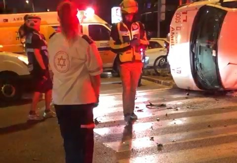بالفيديو: اصابة 3 أشخاص بحادث طرق وانقلاب سيارة اسعاف بتل ابيب
