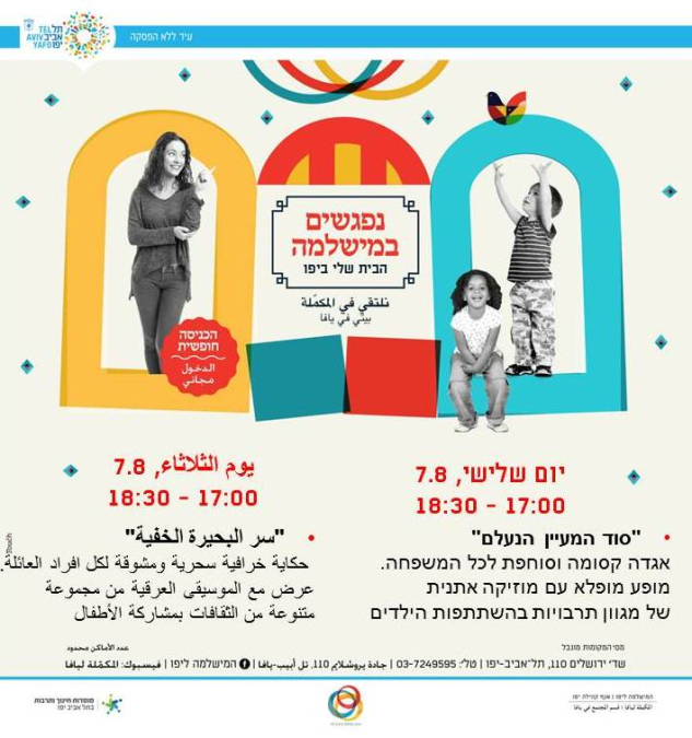 ينظم قسم المجتمع في المكملة ليافا غداً الثلاثاء فعاليات شيّقة للأطفال في مبنى المكملة ليافا ، حيث ستنطلق الفعاليات في تمام الساعة 17:00 وتستمر لغاية 18:30.