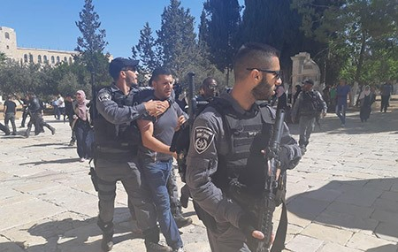 تواجدهم بالقرب من باب المجلس أحد أبواب الأقصى، واعتقلت رائد زغير من لجنة الاعمار بعد الاعتداء عليه و2 اخرين ".