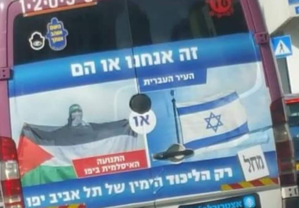 أخذت الحملة الانتخابية لحزب الليكود الاسرائيلي لانتخابات المجلس البلدي في تل ابيب مناحٍ عنصرية وتحريضية واسعة ضد المواطنين العرب في مدينة يافا، حيث جاءت الحملة الانتخابية للحزب تحت عنوان "نحن أو هم في هذه المدينة العبرية" وحملت اللافتات الانتخابية صور لعلم اسرائيل بجانب علم فلسطين مع صورة أحد عناصر كتائب القسام ويرفع بندقية، وقد وتم تعليق اللافتات العنصرية في مناطق واسعة في مدينة يافا وتل ابيب.