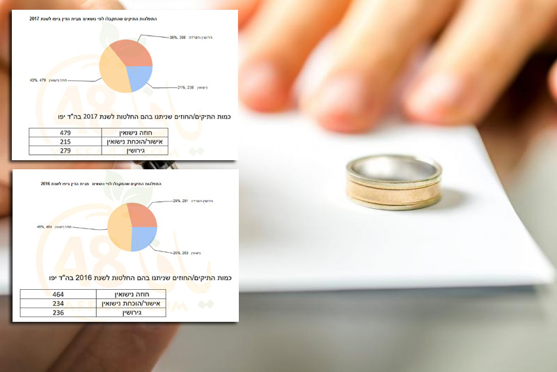 ان ابغض الحلال عند الله الطلاق . هو الحياه الصعبه الذى يعيشها اهلنا بيافا انظر اغلب حلات الطلاق بتكون ياساكن مع اهله من ديق المكان او الاختلاط يا ساكن بالاجار ومش قادرين على مصريف الاجار ومصريف البيت والحياه نار فبقرر يرجع للعزوبيه بقلك اروقلى وكله اسبابه الاحتلال وسرقه بلادنا وبيوتنا