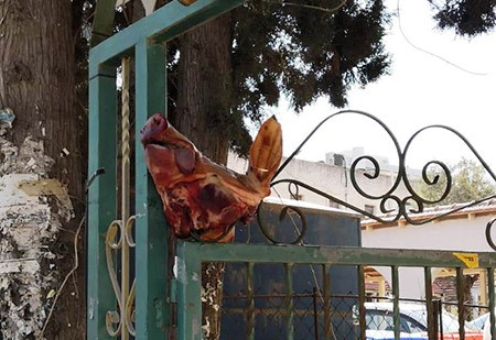 مجهولون يعلقون رأس خنزير على بوابة كنيس بمنطقة المركز