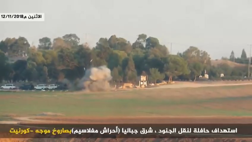 لحظة استهداف حافلة الجنود الاسرائيلية بصاروخ على حدود غزة