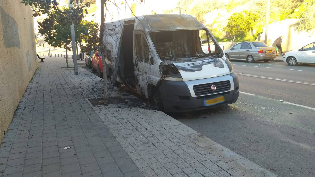 احتراق شاحنة صغيرة قرب ميناء يافا
