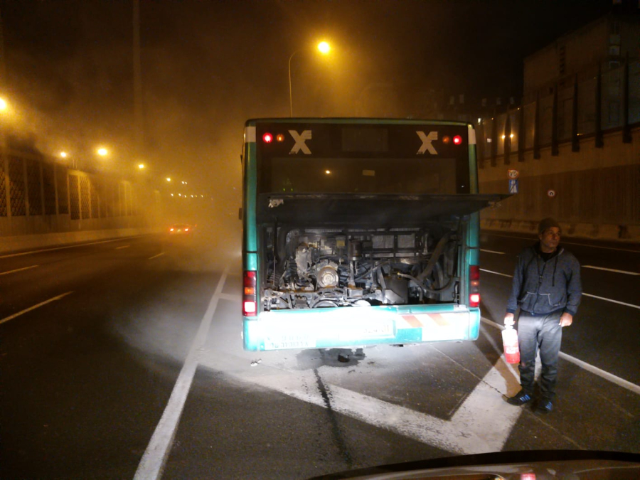 اشتعال النيران في حافلة قرب مفرق فولفسون جنوب يافا