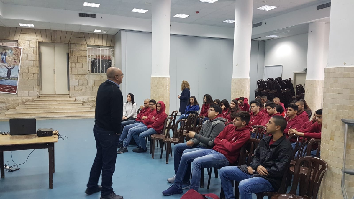 محاضرة للدكتور يوسف مشهراوي في مدرسة تراسنطا بيافا