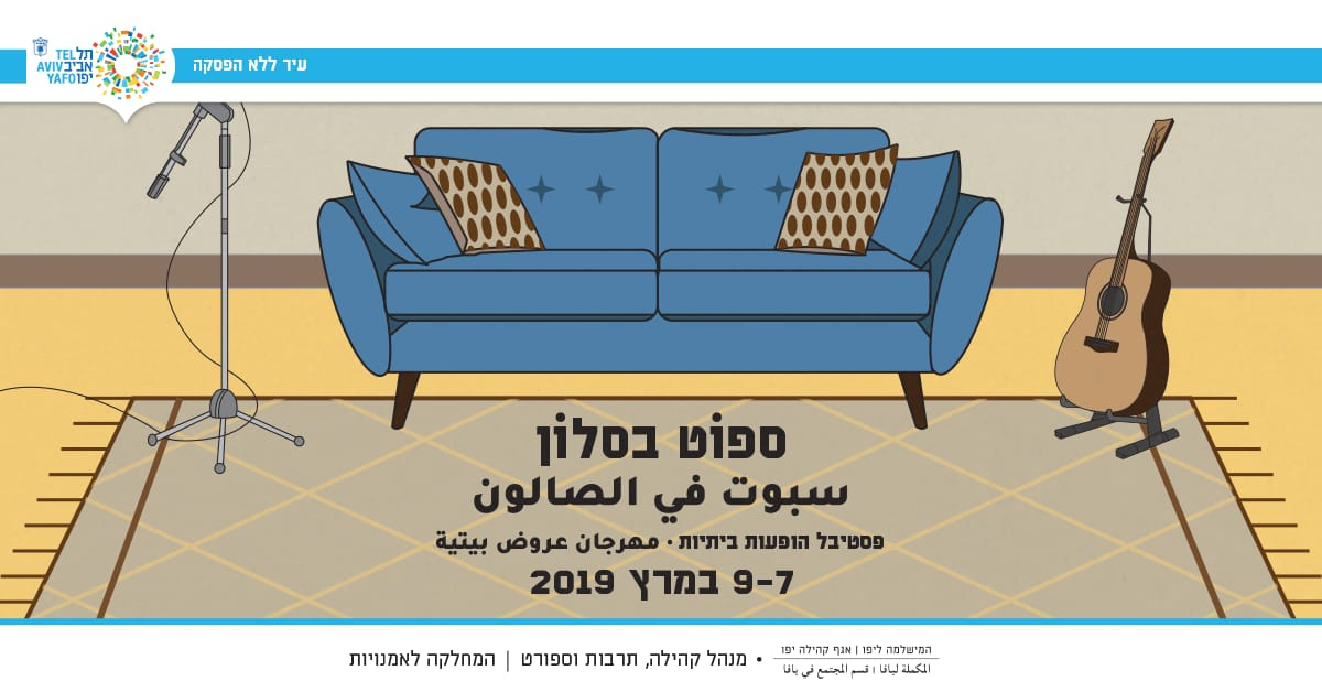 مهرجان عروض في صالونات بيوت الموسيقيين في أرجاء يافا- 25 عرضاً في 25 صالوناً بيتيا، على فترة 3 أيام في جميع أرجاء يافا.