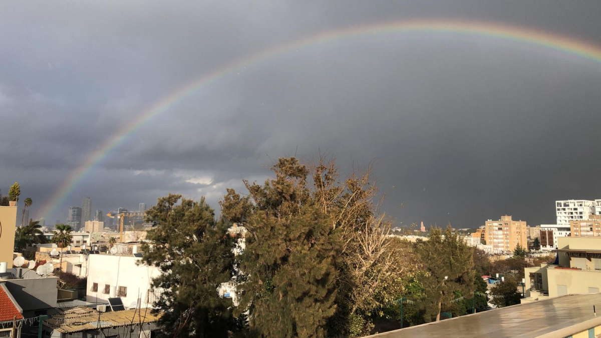 فيديو: أجواء ماطرة في يافا وقوس قزح يُزيّن سماء المدينة