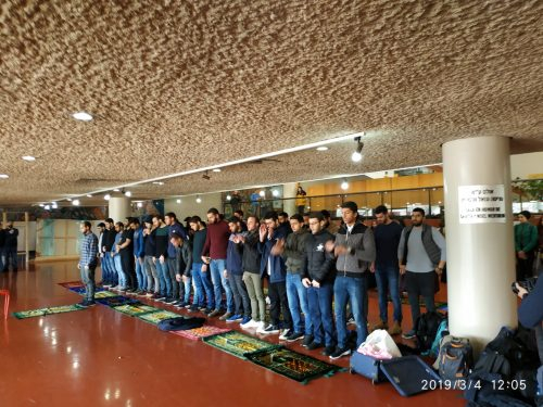 شهدت المكتبة المركزية في جامعة تل أبيب ظهر اليوم الاثنين (4 آذار 2019)، صلاة جمّاعية حاشدة أقامتها كتلة “رؤية” الطلابية، وذلك ضمن سلسلة فعاليات ونشاطات احتجاجية على اغلاق المصلى في مبنى الجامعة.