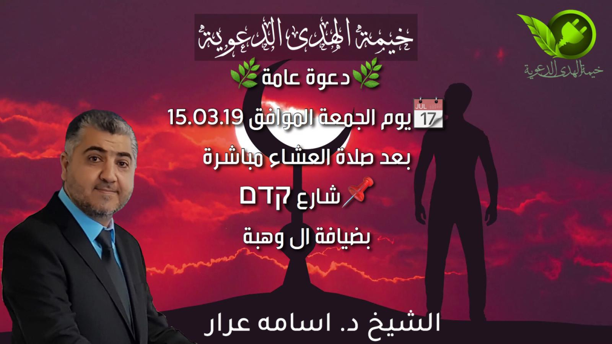 تدعوكم خيمة الهدى الدعوية في مدينة يافا للمشاركة مساء يوم غدٍ الجمعة في الأمسية الايمانية التي ستُنظمها في ضيافة عائلة "وهبة " في بيافا، وذلك بعد صلاة العشاء مباشرة.