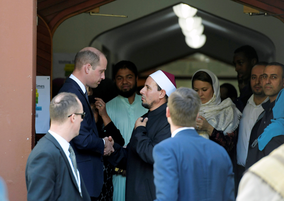 وكان برفقة الأمير وليام رئيسة وزراء نيوزيلندا جاسيندا آردن، وإمام المسجد جمال فودة.