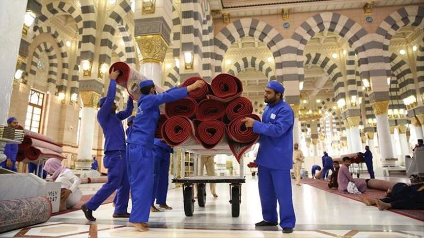 بـ 3 الآف سجادة جديدة.. فرش المسجد النبوي وساحاته استعداد لـ”رمضان”