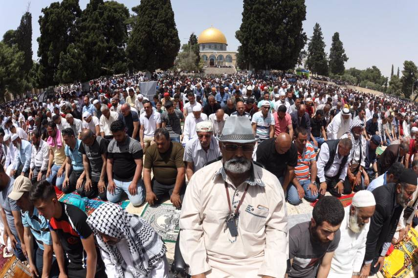وبرغم القيود الإسرائيلية المشدّدة شهدت ساحات المسجد الأقصى المبارك ومصلياته تواجدًا مكثفًا من المصلين الوافدين من مناطق الضفة الغربية والقدس والداخل الفلسطيني، رغم ارتفاع درجات الحرارة وشدة أشعة الشمس.
