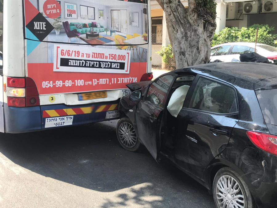 بالصور: أضرار مادية اثر حادث طرق بين مركبة وحافلة في مدينة يافا