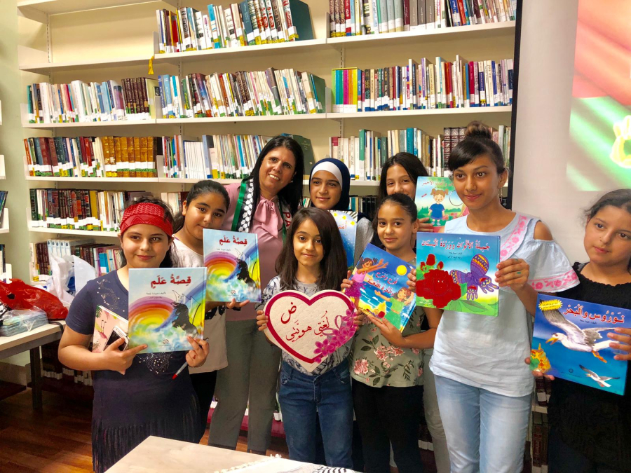 هذا وقد جاء التكريم بعد أن قدّمت الكاتبة لأطفال البلدة الذين توافدوا بأعداد كبيرة إلى المكتبة العامّة، فعاليّة ساعة قصّة حول قصّتها "قصّة علم"، والتي تتناول موضوع حبّ الأرض والوطن من خلال رحلة يقوم بها العلم في ربوع بلاده، وحصوله على ألوانه الأربعة: الأسود، والأبيض، والأخضر، والأحمر من عناصر مختلفة تميّز طبيعة البلاد، وقد شارك الطلّاب بعد الانتهاء من سرد القصّة، وتفاعلهم مع أحداثها في حوار مثرٍ حول مضامينها وأهدافها، حيث برز من بينهم العديد من الطلّاب الذين أبدعوا في التعبير عن أنفسهم، وعن آرائهم المتعلّقة بوجودهم وانتمائهم للأرض والوطن.