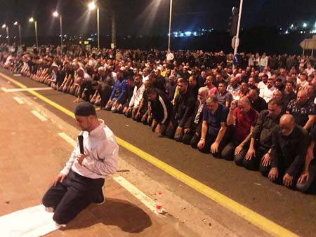 كفرقرع: المحتجون يؤدون صلاة العشاء ويغلقون شارع 65