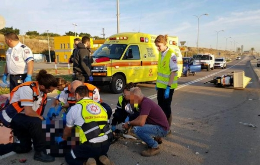 عمم الناطق بلسان نجمة داوود الحمراء، بيانا على وسائل الإعلام، جاء فيه: "وصل بلاغ الى مركز نجمة داوود الحمراء، حول وقوع حادث طرق بين دراجة نارية و سيارة في ريشون لتسيون، وعليه هرع طاقم من المسعفين والمضمدين التابع للمركز الى مكان الحادث، وتم تقديم الاسعافات الأولية لرجل (43 عامًا)، وتم نقله الى المشفى وهو بحالة متوسطة مع إصابة في الظهر والأطراف" بحسب البيان.