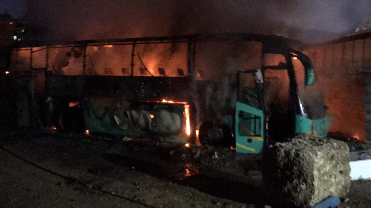 فيديو: احتراق حافلة ركاب في مدينة يافا والاطفائية تهرع للمكان