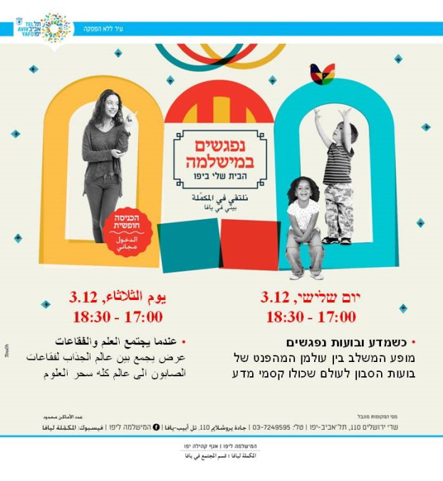 ينظم قسم المجتمع في المكملة ليافا الثلاثاء فعاليات شيّقة للأطفال في مبنى المكملة ليافا ، حيث ستنطلق الفعاليات في تمام الساعة 17:00 وتستمر لغاية 18:30.