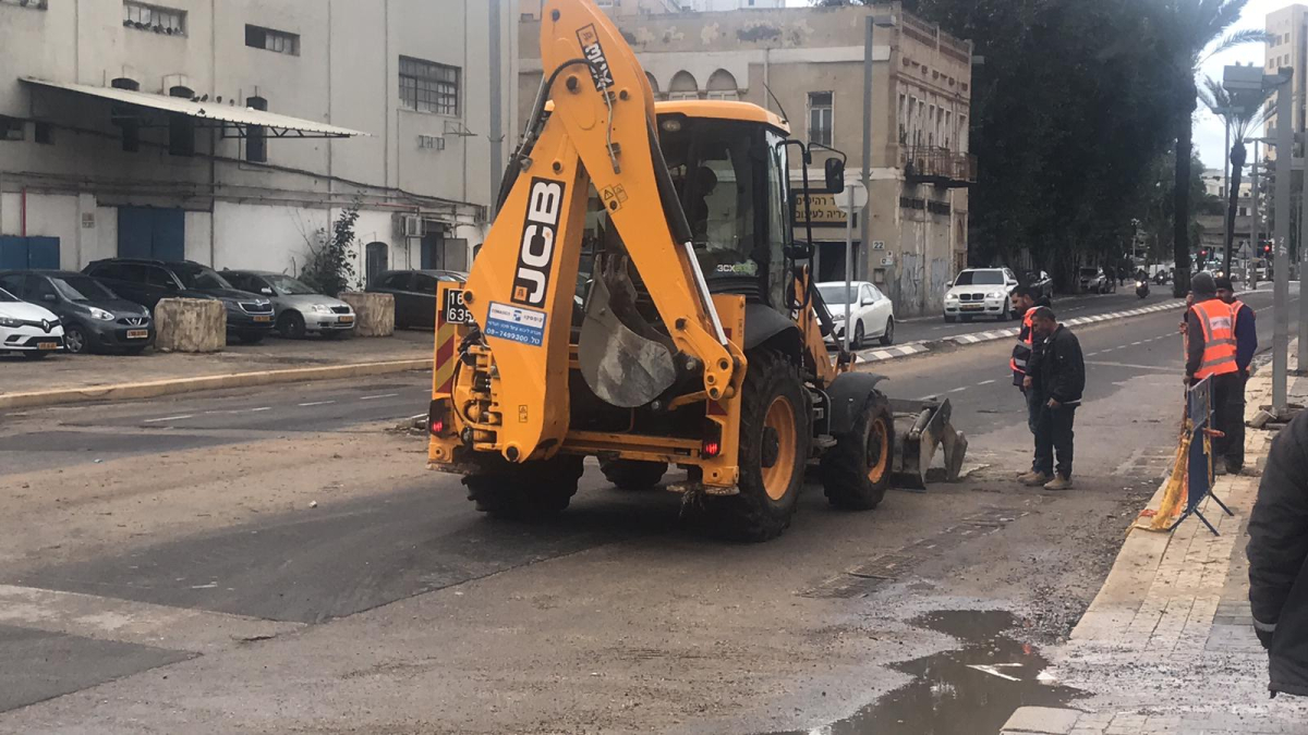 ردم حفرة كبيرة في شارع بنتسفي بيافا