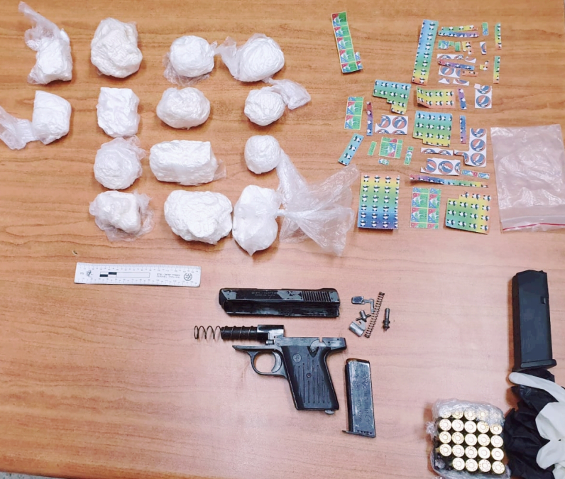 وأضاف "الشرطة صادرت أكثر من 900 غرام من مخدر يشتبه بأنه كوكايين، وأكثر من 600 من طوابع مخدرة، بالاضافة الى سلاح وذخيرة، وقد تم اعتقال مشتبه يبلغ من العمر 50 عاماً، واقتياده للتحقيق".