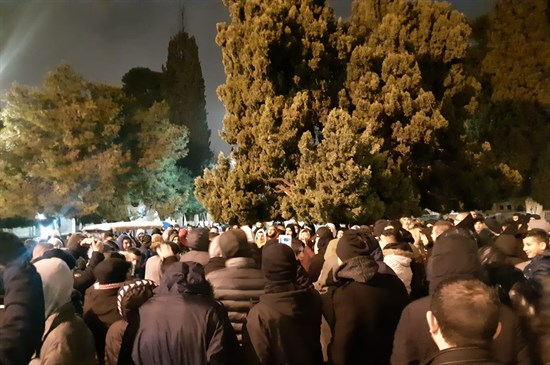 وبعد انتهاء صلاة الفجر ردد المصلون التكبيرات والهتافات في ساحات الأقصى، تأكيدا على حمايته ورفضا لانتهاكات السلطات الاسرائيلية فيه.