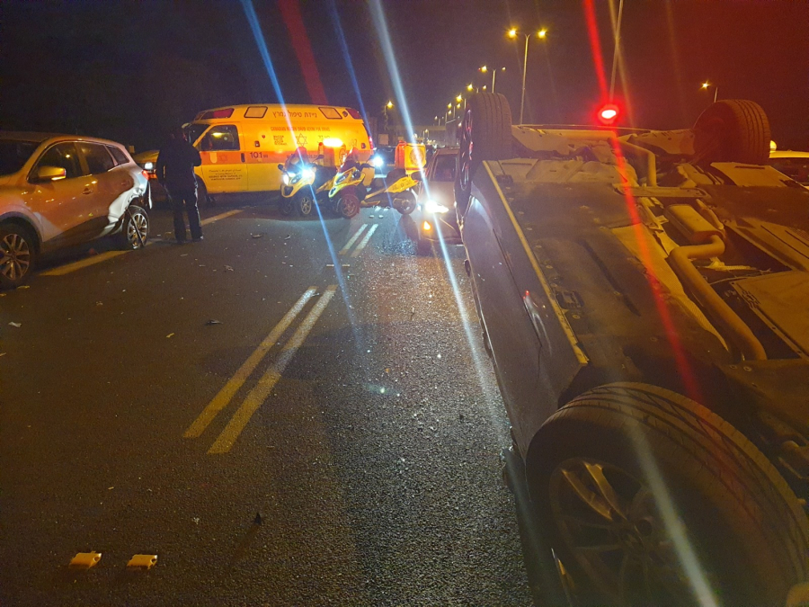 انقلاب سيارة واصابة سائقها في بيت دجن قرب يافا