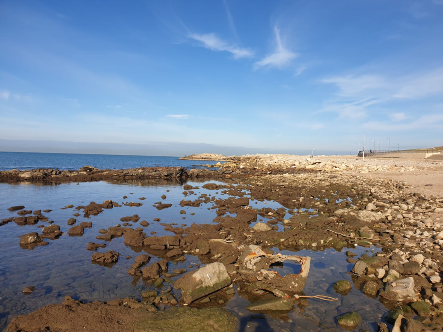 وقد تفاجأ مواطنون من هذا التراجع على الشاطئ الذي كان مغموراً بمياه البحر لفترة طويلة، وعلى ما يبدو فإن انخفاض منسوب مياه البحر يعود لظاهرة الجزر التي أثرت على الشاطئ.