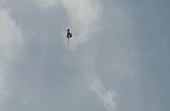 ويظهر في الفيديو أن جسماً مربوط اسفل البالونات، وعلى ما يبدو أنها مواد حارقة.