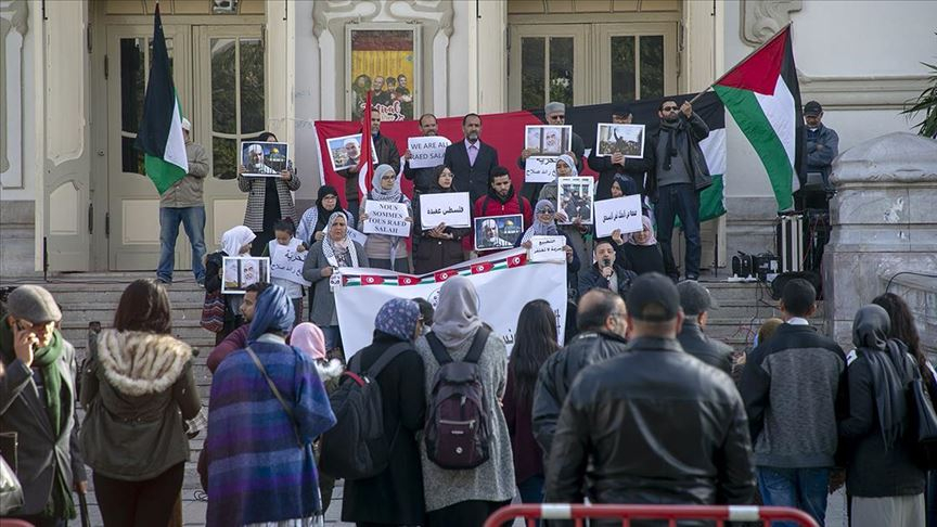 وأفادت مراسلة الأناضول بأن الوقفة جرت أمام المسرح البلدي وسط العاصمة تونس بدعوة من “جمعية أنصار فلسطين” (غير حكومية).