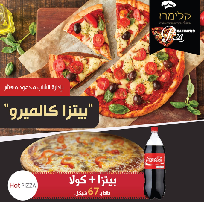 يدعوكم بيتزا كالميرو بإدارة الشاب محمود معشر لتناول أشهى أنواع البيتزا والمعجنات، والحلويات، بالاضافة الى المشروبات الباردة والساخنة، ضمن مجموعة مختارة من العروض المميزة والاسعار المنافسة.