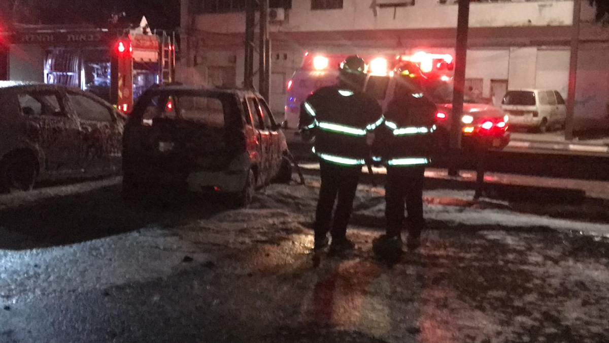 فيديو: احتراق مركبتين في مدينة يافا والاطفائية تهرع للمكان